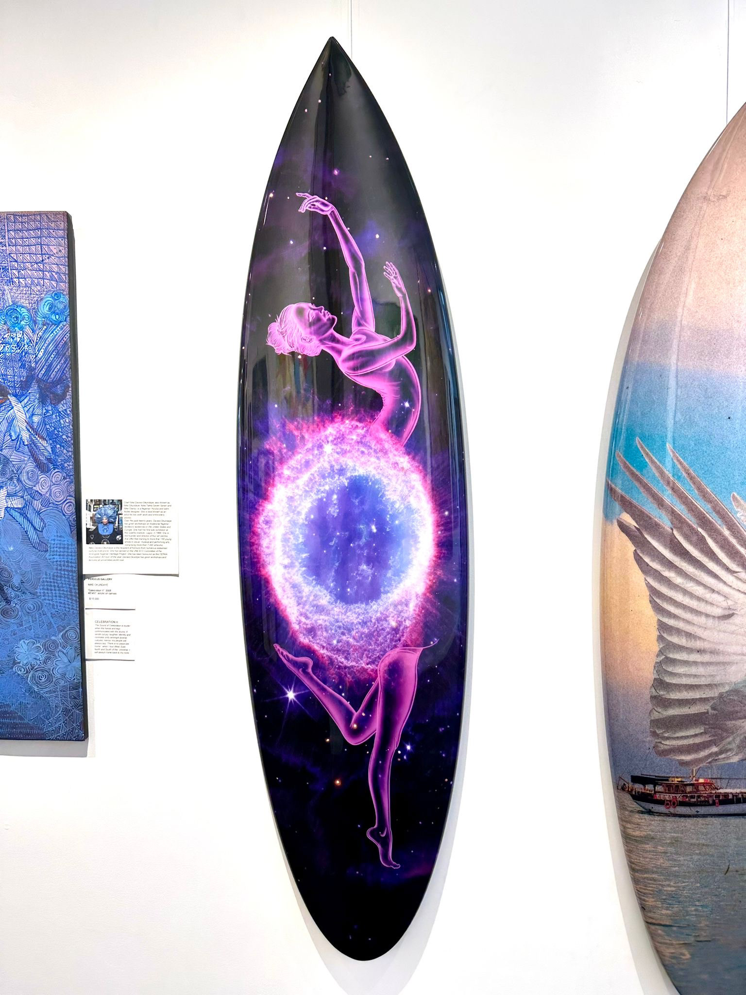 The “Cosmic Dance” surfboard reflects the eternal cycle of the universe—creation, destruction, and renewal. Just as nebulae give birth to new stars from the remnants of their predecessors, we too have the ability to harness our past experiences and shape a brighter future.
